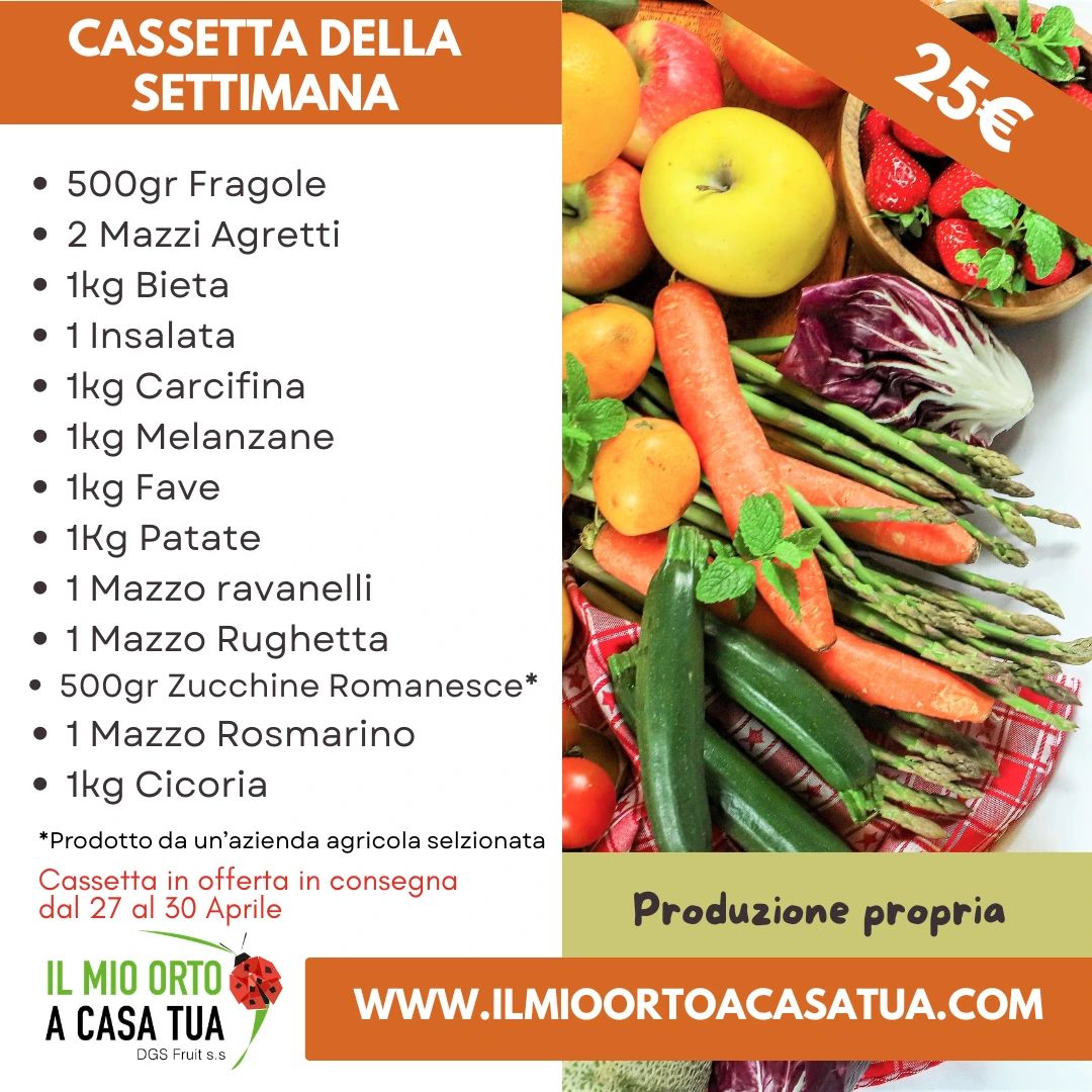 La cassetta di frutta e verdura in offerta è una selezione mista di prodotti freschi di stagione, di nostra produzione, con l'aggiunta di qualche prodotto di nostri partner selezionatissimi, per ampliare la varietà dell'offerta di prodotti presenti.